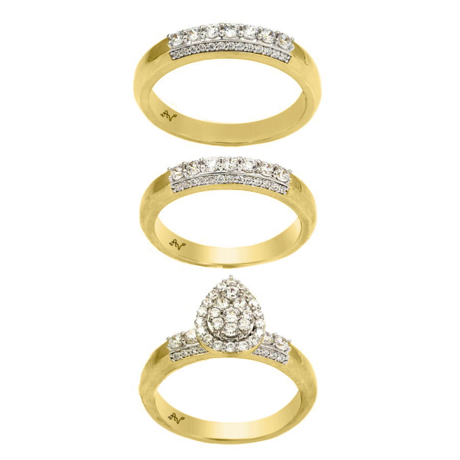 LADIES TRIO SET 1.33CT ROUND DIAMOND 10K YELLOW GOLD