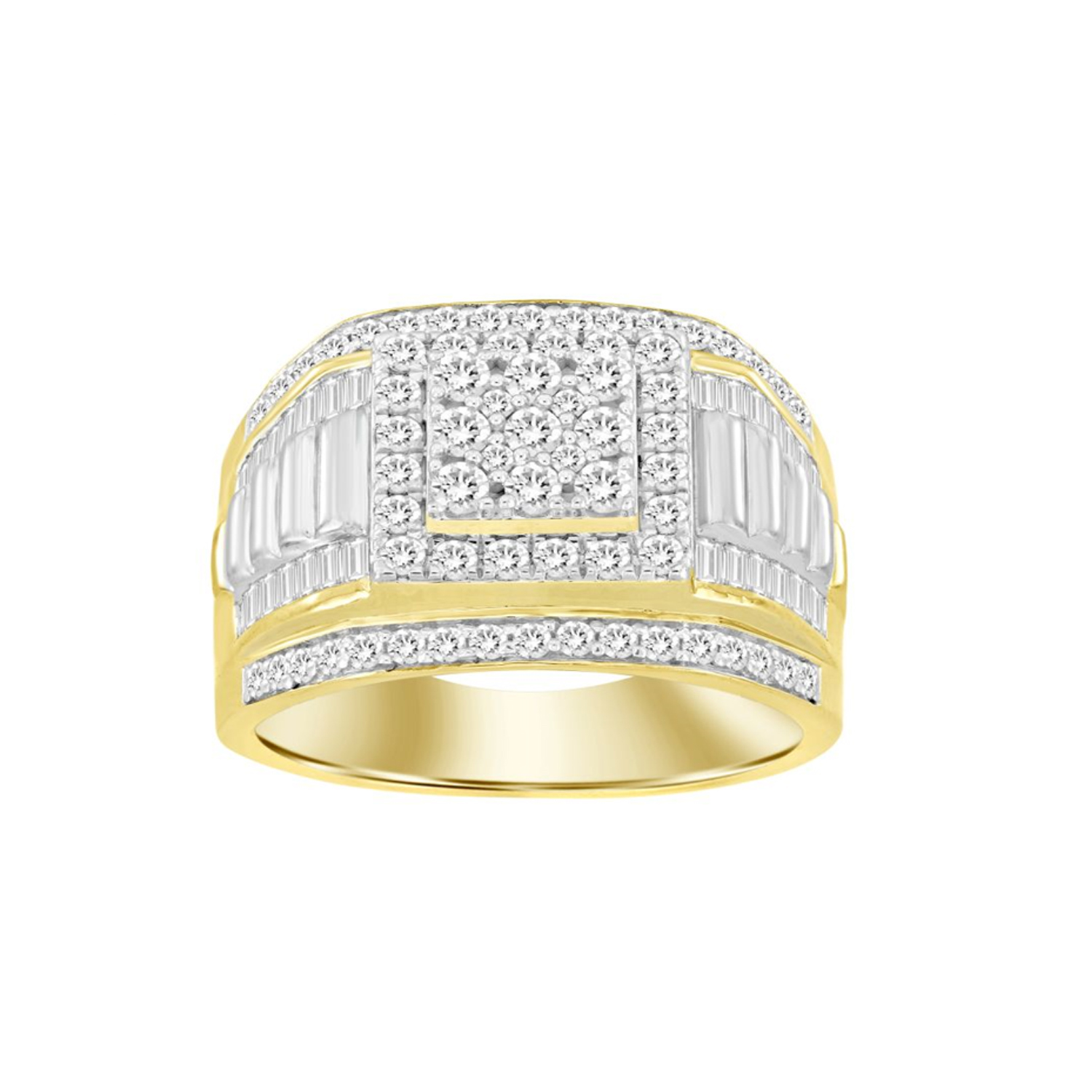 MEN’S RING 1.50CT ROUND/BAGUETTE DIAMOND 10K YELLOW GOLD