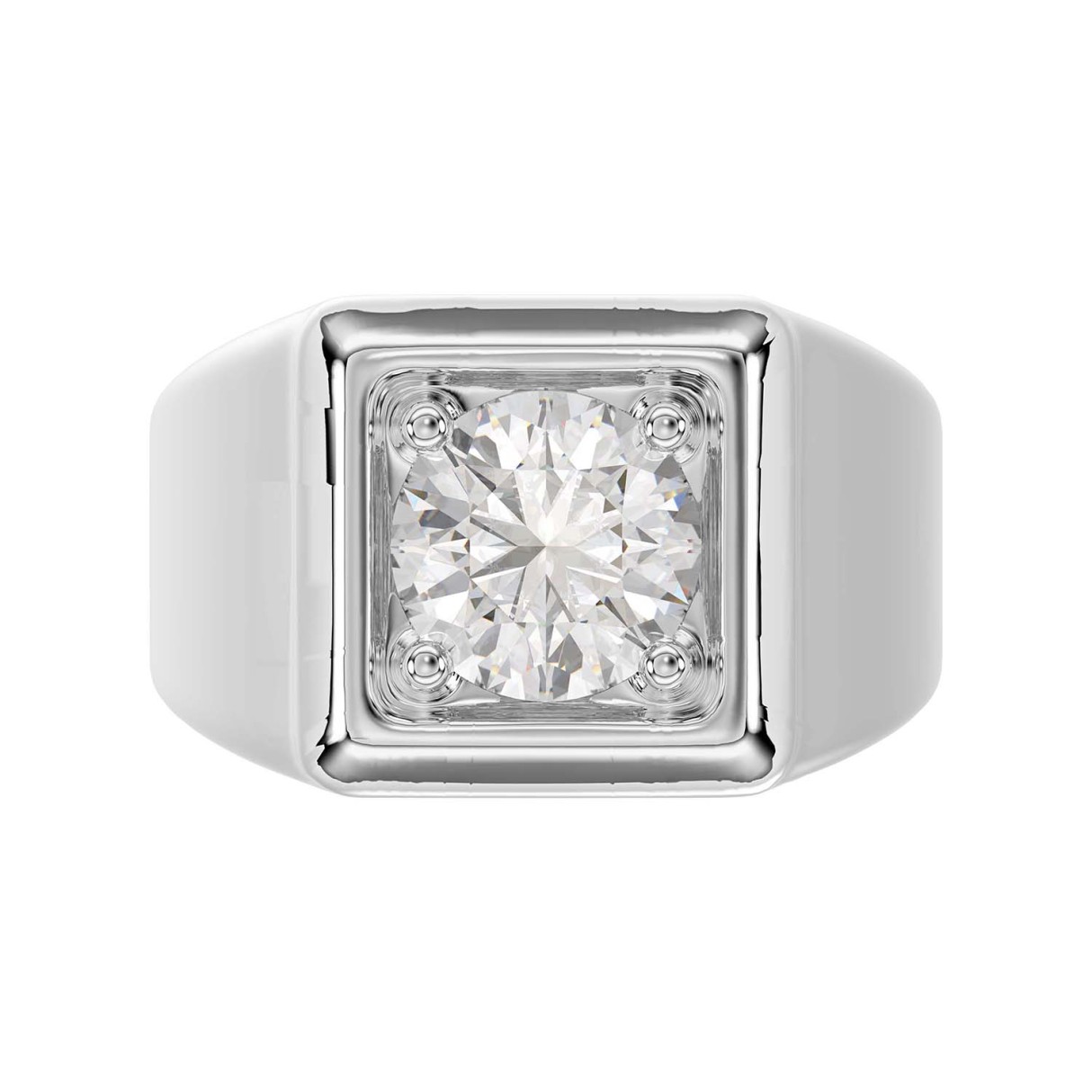 MEN’S RING 2CT ROUND DIAMOND 14K WHITE GOLD (CENTER STONE ROUND DIAMOND 2CT )