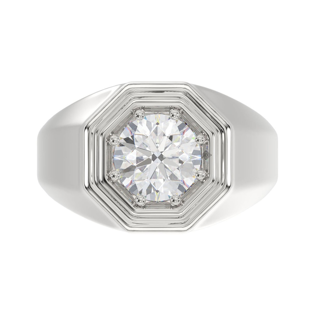 MEN’S RING 2CT ROUND DIAMOND 14K WHITE GOLD (CENTER STONE ROUND DIAMOND 2CT )