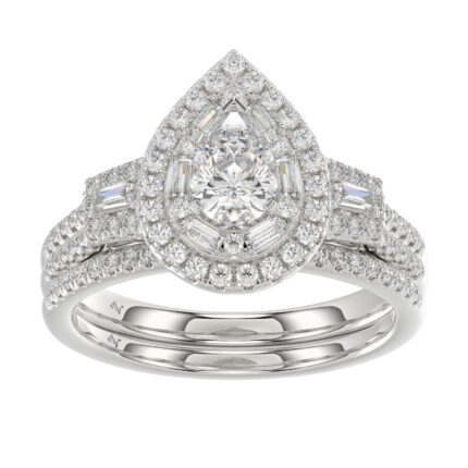 LADIES BRIDAL SET 1.50CT ROUND/BAGUETTE DIAMOND 14K WHITE GOLD (SI QUALITY) (CENTER STONE 0.50CT PEAR DIAMOND)