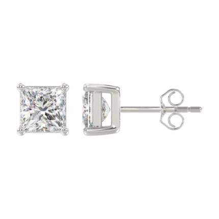 LADIES SOLITAIRE EARRINGS 2CT PRINCESS DIAMOND 14K WHITE GOLD