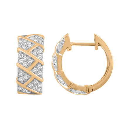 LADIES HOOPS EARRINGS 0.33CT ROUND DIAMOND 10K YELLOW GOLD
