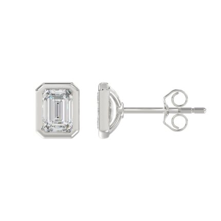LADIES SOLITAIRE EARRINGS 3CT EMERALD DIAMOND 14K WHITE GOLD