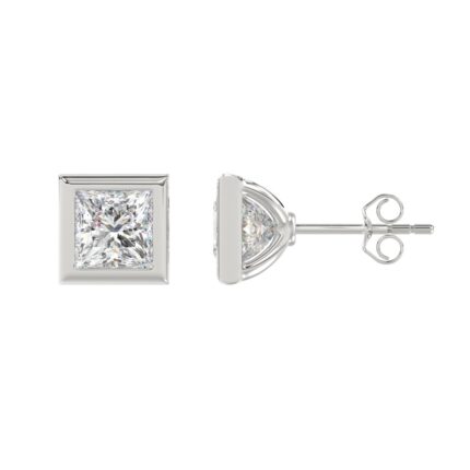 LADIES SOLITAIRE EARRINGS 4CT PRINCESS DIAMOND 14K WHITE GOLD
